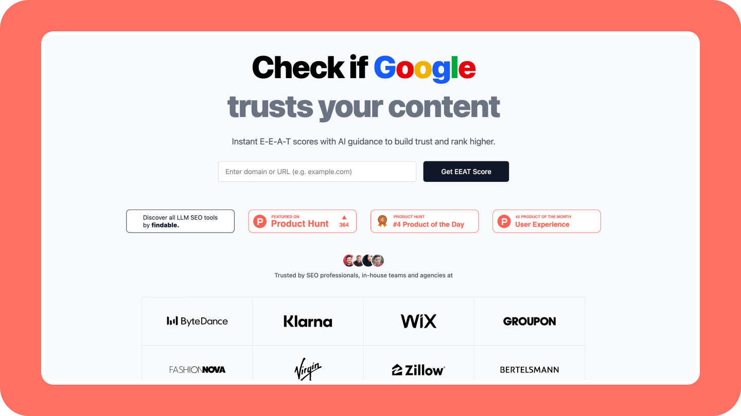 LLM SEO EEAT scores your content’s Experience, Expertise, Authority and Trust in seconds and explains why.