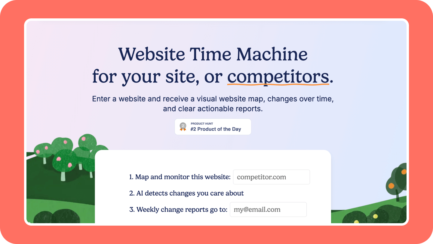 Enter a URL and the service maps the structure, captures pages, detects changes and compares versions.
