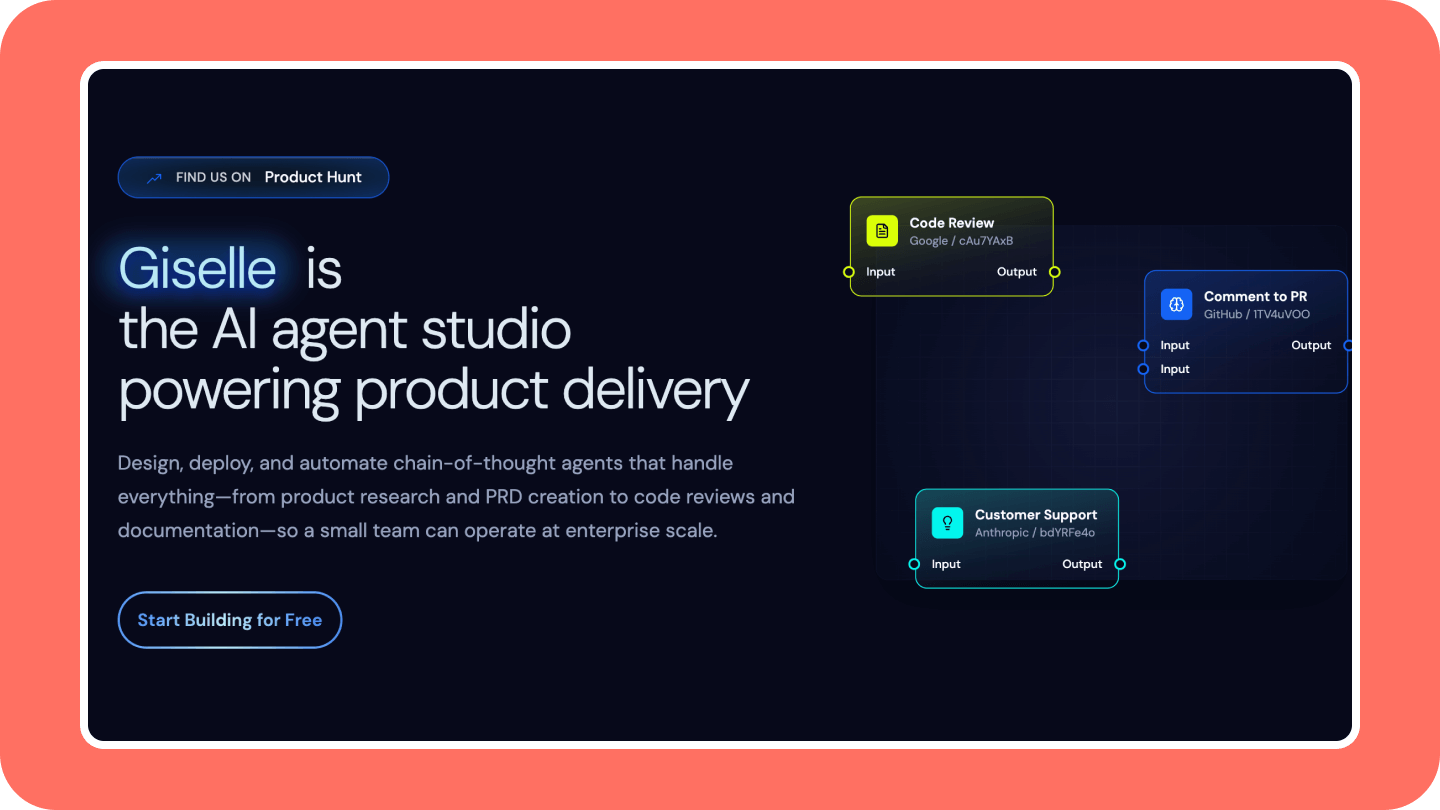 Giselle is an AI app builder letting teams design and deploy agents without coding.